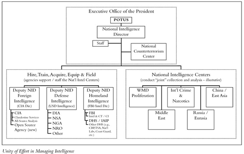 The U.S. government did not find a way of pooling intelligence and using it to guide the planning and assignment of responsibilities for joint operations involving entities as disparate as the CIA, the FBI, the State Department, the military, and the agencies involved in homeland security.