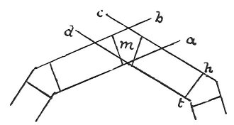 of the angles outwards, as is shown by the line h c and by the line t d which thrust out the pier m; that is they tend to force it away from the centre of such an octagon.