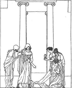 He gave the youth the summons of King Agamemnon, bidding him join the war that the Kings and princes of Greece were about to wage against Troy. And Achilles was glad to get the summons and glad to go. He returned to Phthia, to his fathers citadel. There did he make ready to go to Aulis where the ships were being gathered. He took with him his fathers famous warriors, the Myrmidons who were never beaten in battle. And his father bestowed on him the armour and the horses that had been the gift of Zeus--the two immortal Xanthos and Balios.