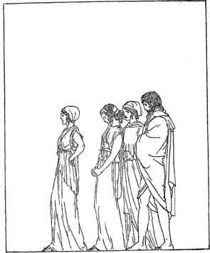 A PLACE was levelled for the dance, and the blind minstrel, Demodocus, took the lyre in his hands and made music, while youths skilled in the dance struck the ground with their feet. Odysseus as he watched them marvelled at their grace and their spirit. When the dance was ended he said to the King, My Lord Alcinous, thou didst boast thy dancers to be the best in the world, and thy word is not to be denied. I wonder as I look upon them.