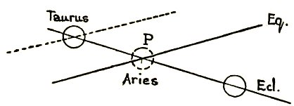How was this location defined? Among what stars was the Sun moving at that critical moment? (For of course it was understood, or supposed, that the Sun was deeply influenced by the constellation through which it was, or appeared to be, moving.) It seems then that at the period when these questions were occupying men's minds--say about three thousand years ago--the point where the Ecliptic crossed the Equator was, as a matter of fact, in the region of the constellation Aries or the