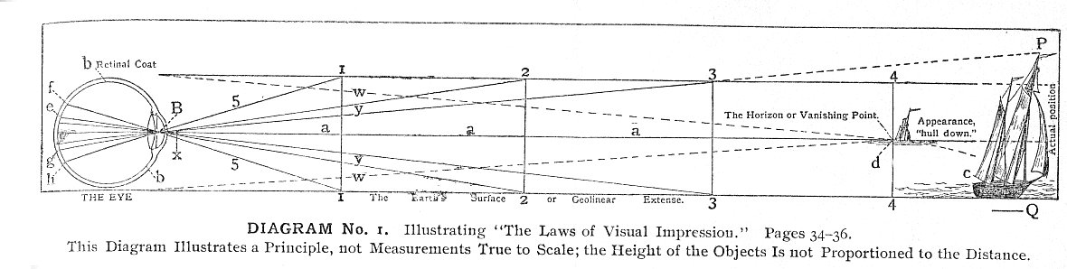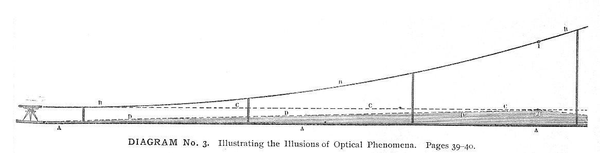 We maintain that an assumption predicated upon an optical illusion is not sufficient ground for the establishment of a rational conviction. If the earth were a perfectly flat surface extended illimitably, an observation from a tower looking out in every direction would assume, to the eye, the appearance of a circular horizon, for the simple reason that geolinear fore-shortening would provide for a vanishing point at a given distance from the observer, proportionate to the elevation of the point from which the observation is taken.