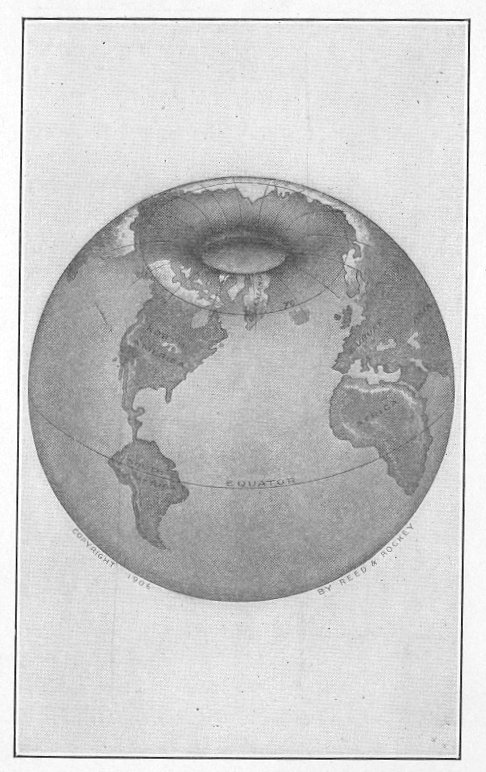 It is still claimed by many that the Arctic Ocean is a frozen body of water. Although it always contains large bodies of drift-ice and icebergs, it is not frozen over. The student of Arctic travels will invariably find that explorers were turned back by open water, and many instances are cited where they came near being carried out to sea and lost. Had they continued going out to sea,--not knowing that the earth was hollow,--they might have been lost but still live. One can easily imagine how those that tried to reach the pole by balloon might get lost and never find their way out, not knowing that the earth was hollow. What I wish to present to the reader, however, is the proof that the Arctic Ocean is an open body of water, abounding with game of all kinds, and the farther one advances the warmer