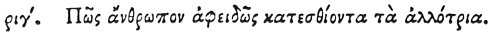 of another's substance, and afterwards consumes his own, they depict a POLYPUS; for, if he be in want of food from other things, he eats his own feelers.