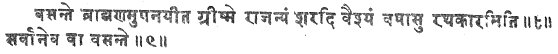are unconnected with the main subject have been inserted. A third argument for the great antiquity of Baudhâyana's Sûtras, derived from the archaic character of some of his doctrines, has been discussed in the Introduction to Âpastamba 1. The number of instances where Baudhâyana's rules are based on a more ancient order of ideas than Âpastamba's might be increased very considerably. But, as now the comparison of the two works is open to all students, I omit the cases contained in the two Dharma-sûtras, and content myself with adducing one more from the less accessible Grihya-sûtras. It is a well-known fact that the ancient Vedic ritual in certain cases admitted Sûdras, and particularly the Rathakâra or carpenter, who, according to all accounts, has Sûdra blood in his veins, to a participation in the Srauta rites. The Taittirîya-brâhmana even gives certain Mantras to be recited by the Rathakâra at the Agnyâdhâna sacrifice 2. Now Baudhâyana, who, Dh. S. I, 9, 17, 6, derives the origin of the Rathakâras from a Vaisya male and Sûdra female, apparently reckons him amongst the twice-born, and explicitly allows him to receive the sacrament of the initiation. He says, Grihya-sûtra II, 5, 8-9, 'Let him initiate a Brâhmana in spring; a Kshatriya in summer, a Vaisya in autumn, a Rathakâra in the rainy season; or all of them in spring 3.' But Âpastamba, who shows great hostility against the mixed castes, and emphatically denies the right of Sûdras to be initiated, gives the same rule regarding the seasons for the initiation both in his Grihya and Dharma-sûtras 4. He, however, omits the Rathakâra in both cases. There can be no doubt that Âpastamba's exclusion of the carpenter, which agrees with the sentiments prevailing in modern Brâhmanical society, is an off-shoot of a later doctrine, and as both he and Baudhâyana
