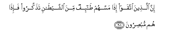 201. Inna allatheena ittaqaw itha massahum ta-ifun mina alshshaytani tathakkaroo fa-itha hum mubsiroona