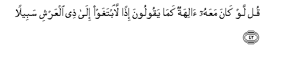 42. Qul law kana maAAahu alihatun kama yaqooloona ithan laibtaghaw ila thee alAAarshi sabeelan
