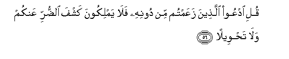 56. Quli odAAu allatheena zaAAamtum min doonihi fala yamlikoona kashfa alddurri AAankum wala tahweelan