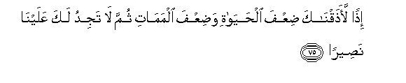 75. Ithan laathaqnaka diAAfa alhayati wadiAAfa almamati thumma la tajidu laka AAalayna naseeran