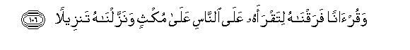 106. Waqur-anan faraqnahu litaqraahu AAala alnnasi AAala mukthin wanazzalnahu tanzeelan