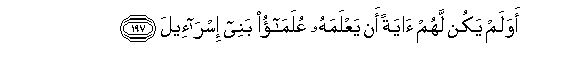 197. Awa lam yakun lahum ayatan an yaAAlamahu AAulamao banee isra-eela
