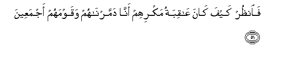 51. Faonthur kayfa kana AAaqibatu makrihim anna dammarnahum waqawmahum ajmaAAeena
