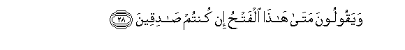 28. Wayaqooloona mata hatha alfathu in kuntum sadiqeena
