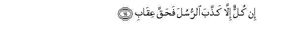 14. In kullun illa kaththaba alrrusula fahaqqa AAiqabi