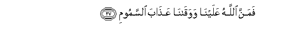 27. Famanna Allahu AAalayna wawaqana AAathaba alssamoomi