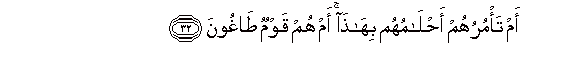 32. Am ta/muruhum ahlamuhum bihatha am hum qawmun taghoona