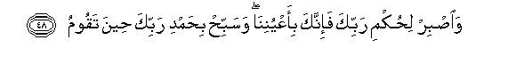 48. Waisbir lihukmi rabbika fa-innaka bi-aAAyunina wasabbih bihamdi rabbika heena taqoomu
