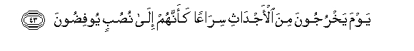 43. Yawma yakhrujoona mina al-ajdathi siraAAan kaannahum ila nusubin yoofidoona