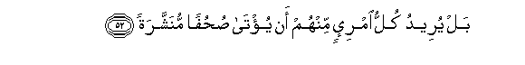 52. Bal yureedu kullu imri-in minhum an yu/ta suhufan munashsharatan