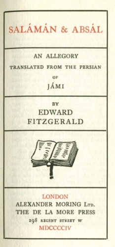 Salaman and Absal, by Jami, tr. Edward Fitzgerald, [1904], at sacred-texts.com