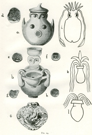 (a) The so-called "owl-shaped" vase is really a representation of the Mother-Pot in the form of a conventionalized Octopus (Houssay).