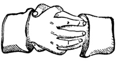 The Penal Sign is given by putting the right hand to the left side of the bowels, the hand open, with the thumb next to the belly, and drawing it across the belly, and letting it fall; this is done tolerably quick. This alludes to the penalty of the obligation: "Having my body severed in twain," etc. See page 75. After the Master has given the sign and due guard, which does not take more than a minute. he says, "Brother, I now present you with my right hand, in token of brotherly love and affection, and with it the pass-grip and word."