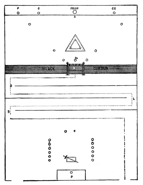 This plan contemplates the use of a single Hall, which is most desirable. The Bulwarks are Cyprus, Rhodes, and Malta. Meditations at these are on the Birth, Life, Death, Resurrection and Ascension of our Saviour.