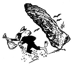 that the next night at the stroke of twelve the great rocks would go down to the river to drink, leaving their treasures uncovered, But the crafty beggar did not tell Bernez how to avoid being crushed when the stones returned to their places.