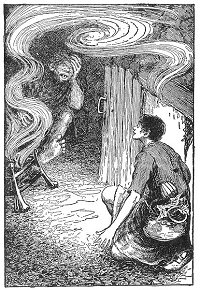 So, taking up his wallet, which contained the Thunder-plant, he went to the bothy of the green man and gave a good rap at the door.