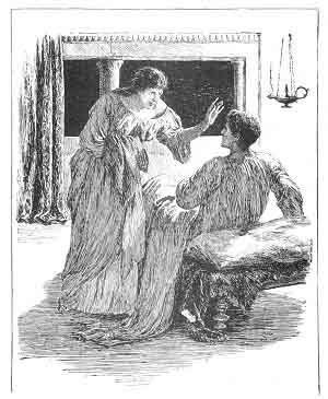 Duessa rose hastily from her place, and ran to the Red Cross Knight, saving,--