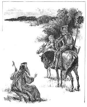 Archimago had been watching everything from a secret hiding-place. Now, when he saw Una escaping. he quickly followed, for he hoped to be able to work her some further mischief.