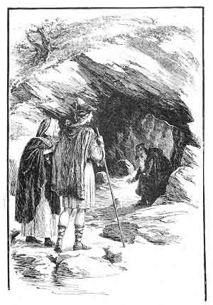 Arrived here, Glaucé and Britomart at first loitered about outside, afraid to go into the cave, and beginning to doubt whether they had done well to come. The brave maiden, with love to befriend her, was the first to enter, and there she found the magician deep in some work of wonder, busily writing strange characters on the ground.