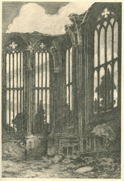 Supper over, the painter sat for some time over his pipe and his wine, and then, gathering together his sketching impedimenta, quitted the inn and took his way toward the ruins of Oppenheim's ancient abbey. It was a calm, windless night, and the silver moon sailed high in the heavens. Not a sound broke the silence as the young man entered the churchyard. Seating himself upon a flat tombstone, he proceeded to arrange his canvas and sketching materials; but as he was busied thus his foot