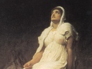 66. This stanza, which fits so badly with the preceding ones, [fp. 27] may well have been interpolated. It has been suggested that the dragon, making a last attempt to rise, is destroyed, this event marking the end of evil in the world. But in both manuscripts the final half-line does not refer to the dragon, but, as the gender shows, to the Volva herself, who sinks into the earth; a sort of conclusion to the entire prophecy. Presumably the stanza (barring the last half-line, which was probably intended as the conclusion of the poem) belongs somewhere in the description of the great struggle. Nithhogg: the dragon at the roots of Yggdrasil; cf. stanza 39 and note. Nithafjoll ("the Dark Crags"); nowhere else mentioned. Must I: the manuscripts have "must she."]