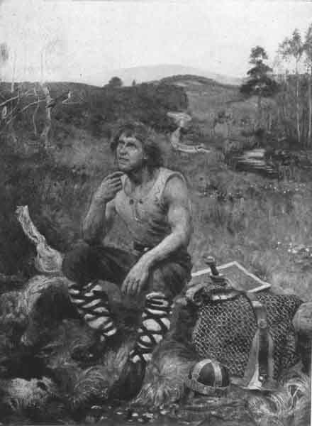 So Sigurd rode on. The birds sang to him and he heard with wonder. Nor rested he on the green-girt way until he came to Hindarfell, where Brynhild lay wrapped in a magic sleep.