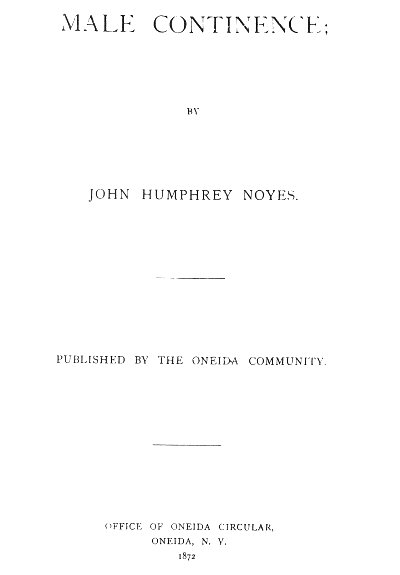 Male Continence, by John Humphrey Noyes [1872], at sacred-texts.com