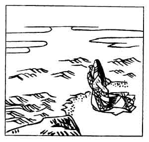 The Lady Kii lived at the Court of the Emperor Horikawa, who reigned A.D. 1087-1107. Takashi is a seaside place in the Province of Izumi, not far from Ōsaka, and on the shore we see the Lady Kii, perhaps composing this verse to her lover.