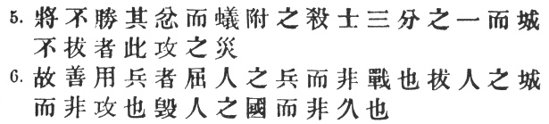 19:3 We are reminded of the terrible losses of the Japanese before Port Arthur, in the most recent siege which history has to record. The T‘ung Tien reads #. For # the Yü Lan has #. Capt. Calthrop does not translate #, and mistranslates #.