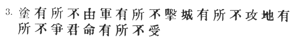 3. There are roads which must not be followed, 1 armies which must not be attacked, 2 towns 3 which must not be besieged 4, positions which must not be contested, commands of the sovereign which must not be obeyed. 5