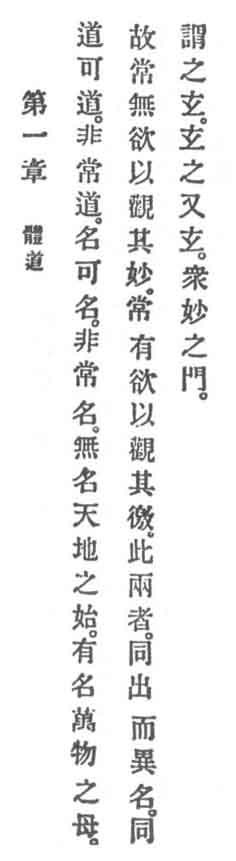 1. The Reason that can be reasoned is not the eternal Reason. The name that can be named is not the eternal Name. The Unnamable is of heaven and earth the beginning. The Namable becomes of the ten thousand things the mother.