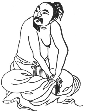 122:* The illustration, being identical with the above Figure, is omitted; the pressure of the hand is applied to the right instead of the left thigh, and the head is turned to the left. The character used in the second is pi (#), which is not found in any of our Chinese-English Dictionaries. In the writer's Vocabulary of Anatomical Terms, to be published shortly, it refers to the region of the stomach. The part to be pressed upon in the above Figure is pi (#), the thigh, which agrees with the illustrations.