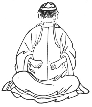 Sit upright, clench the two hands, rub them warm, place the palms of the hand to the posterior ching door, rub several times, the more the better, and each time revolve the air 24 times. (In spermatorrhœa the legs are said to be painful).