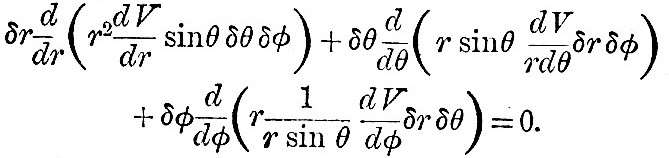 It remains to find the equation of continuity. This may be deduced geometrically from the consideration that the volume of an element of the fluid remains constant; but a shorter way is to derive it from the equation of continuity as it occurs in ordinary hydrodynamical investigations. If V be a velocity potential, the equation of continuity for incompressible fluid is