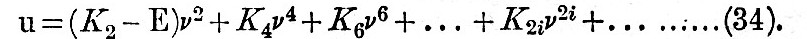 Substituting from (34) in (33), and equating to zero the coefficients of the successive powers of v, we find K2 = E, K4 apparently indeterminate, and