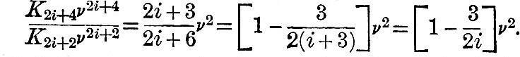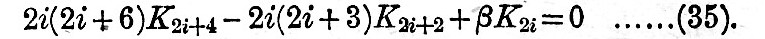 Since K0 = 0, this equation of condition may be held to apply for all positive integral values of i, beginning with i = 0. It is obvious that K6 is determinable in terms of K4 and K2, K5 in terms of K6 and K4, &c., so that all the K's are to be found in terms of K2, which is known, and of K4, which is apparently indeterminate.