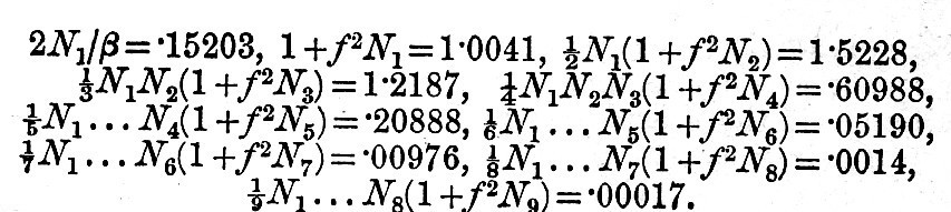 Now we find that, when β = 40, which makes the depth of the sea 3000 fathoms or of the radius of the earth, and with f = .0365012, which is the value for the fortnightly tide (see chap. iv.),