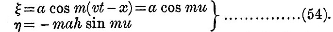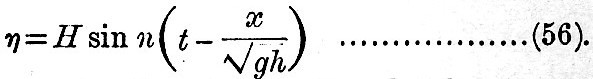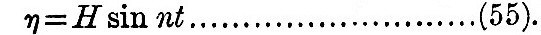 (54) gives the height of the water whose undisturbed abscissa is x, and since ξ is small this is approximately the height at the point on the bank whose abscissa is x. But now suppose that at the origin (the mouth of the river) the canal communicates with a basin in which there is a forced oscilliation of water-level given by
