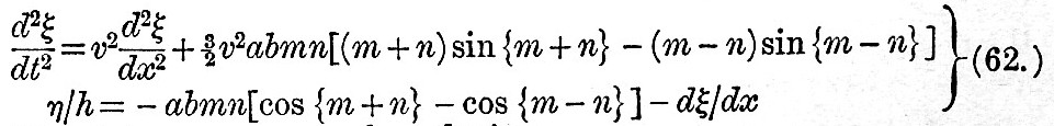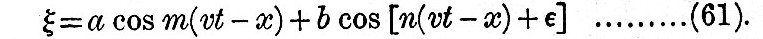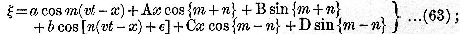 B and D remain arbitrary as before, and will be dropped, because they are to be determined by the condition that at the origin the terms of dξ/dx in cos {m + n}, cos {m - n} are to vanish, whence