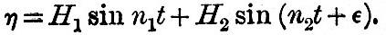 (ii.) Compound Tides (see § 24).We shall now consider the mutual influence of two waves of different periods travelling up the river together. In the first approximation they are quite independent, and we may assume