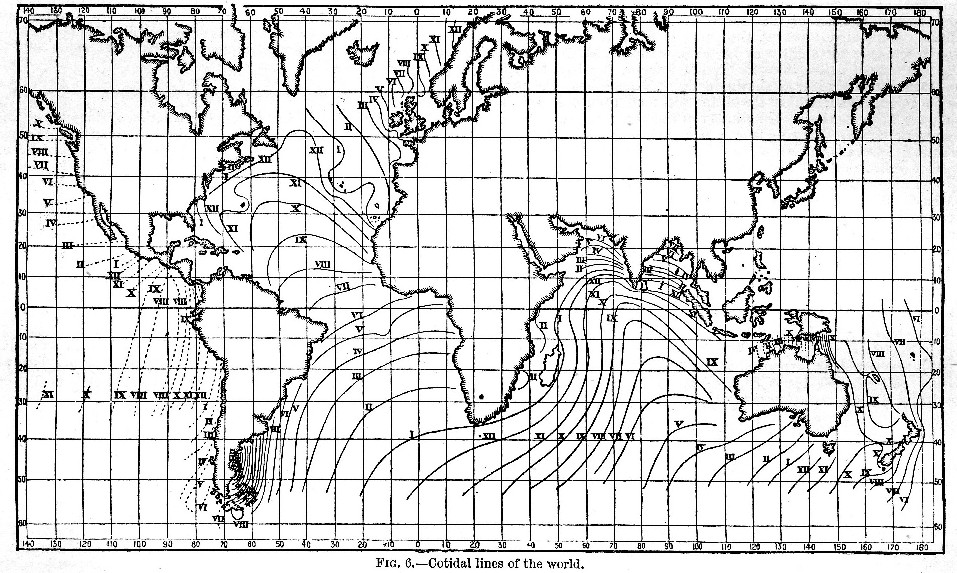 1902 Encyclopedia > Tides > [Progress of the Tide Wave...] Cotidal Lines of the World